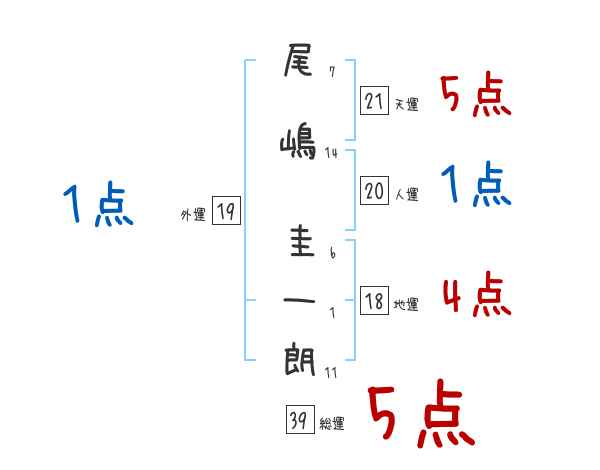尾嶋圭一朗さんの画数の鑑定結果