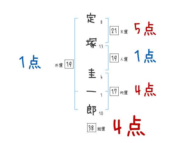 定塚圭一郎さんの画数の鑑定結果