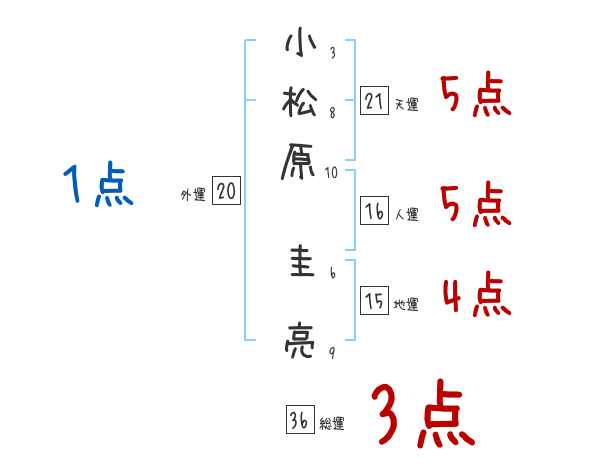 小松原圭亮さんの画数の鑑定結果