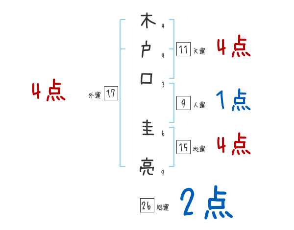 外運![]() | 木戸口圭亮さんの外運は17画の4つ星!積極的な行動力。地位を気づき財産を手に入れる。純粋な心と直感力。 生活面を象徴する運勢です。外部から受ける影響力を表し、結婚運、家庭運や職場、環境への順応性を表します。 |
