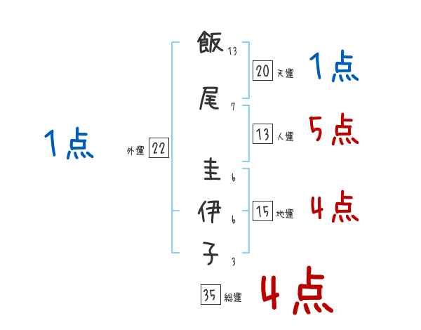 飯尾圭伊子さんの画数の鑑定結果