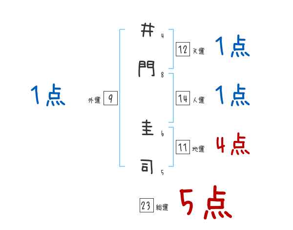 井門圭司さんの画数の鑑定結果