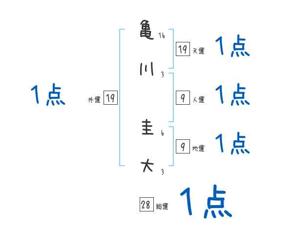 亀川圭大さんの画数の鑑定結果