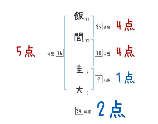 飯間圭大さんの画数の鑑定結果