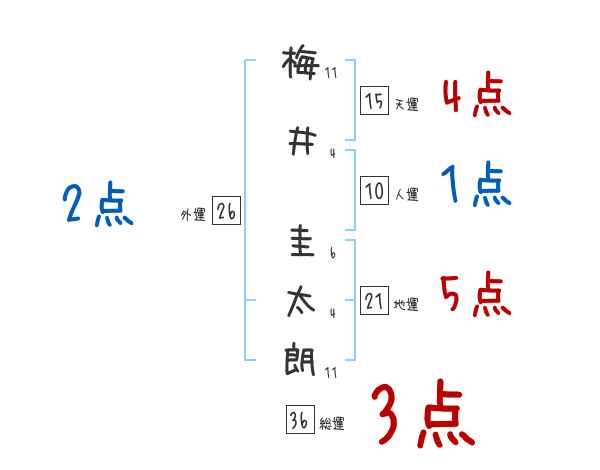 梅井圭太朗さんの画数の鑑定結果