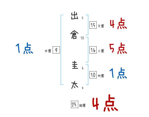 出倉圭太さんの画数の鑑定結果