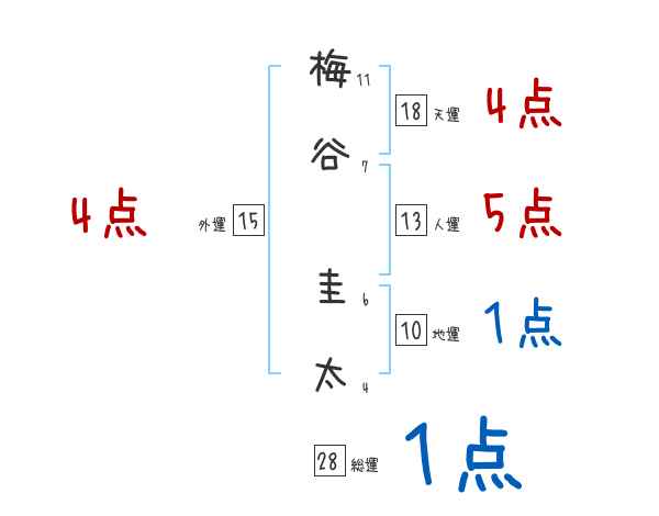 総運![]() | 梅谷圭太さんの総運は28画の1つ星!家庭環境に注意。スポーツで活躍できる能力があるかも。 あなたの人生を表す1番重要な運勢です。生涯を通じて影響する総合運となり、主に50歳以降の晩年期に影響を及ぼします。 |