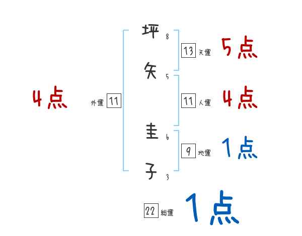 坪矢圭子さんの画数の鑑定結果