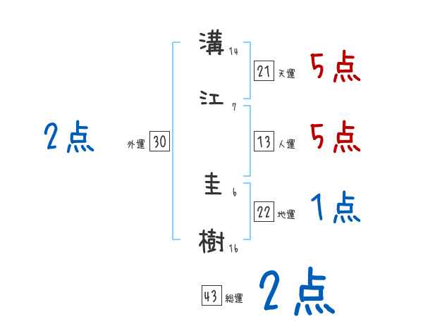 溝江圭樹さんの画数の鑑定結果