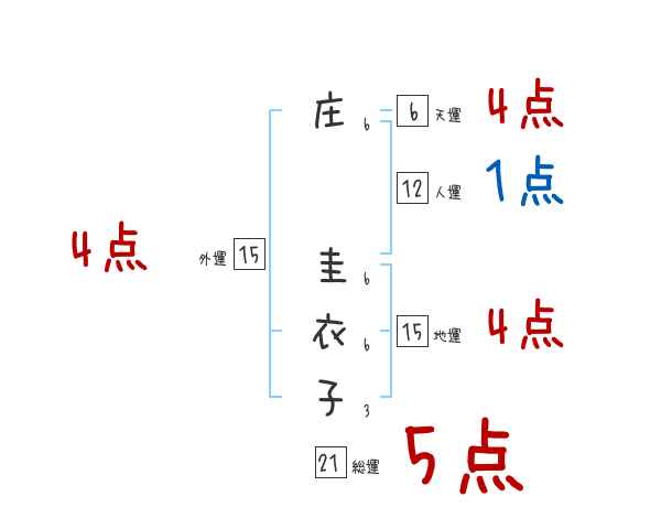 庄圭衣子さんの画数の鑑定結果