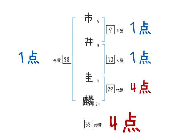 市井圭麟さんの画数の鑑定結果