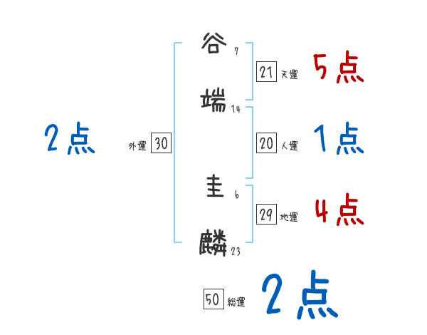 谷端圭麟さんの画数の鑑定結果