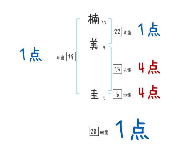 楠美圭さんの画数の鑑定結果