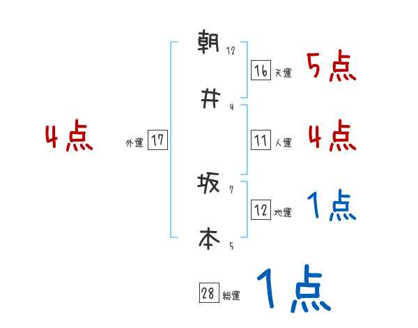 朝井坂本さんの画数の鑑定結果
