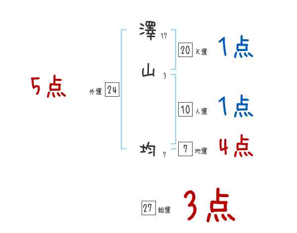 澤山均さんの画数の鑑定結果
