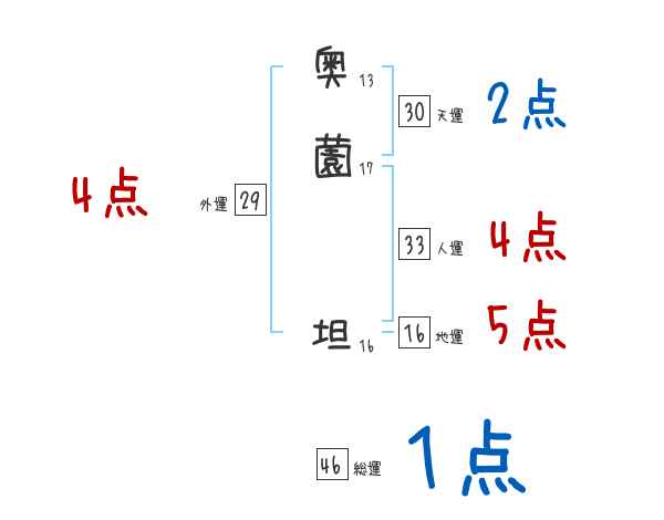 奥薗坦さんの画数の鑑定結果