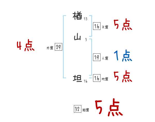 楢山坦さんの画数の鑑定結果