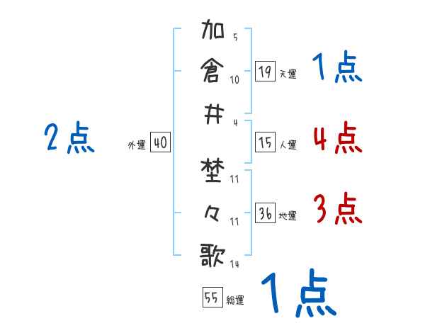 総運![]() | 加倉井埜々歌さんの総運は55画の1つ星!欲張りな性格で軽率な行動に注意しましょう。病気に気をつけて。 あなたの人生を表す1番重要な運勢です。生涯を通じて影響する総合運となり、主に50歳以降の晩年期に影響を及ぼします。 |