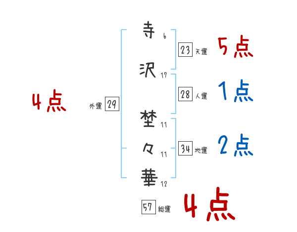 寺沢埜々華さんの画数の鑑定結果