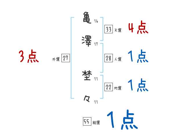 亀澤埜々さんの画数の鑑定結果