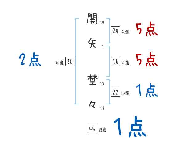 関矢埜々さんの画数の鑑定結果