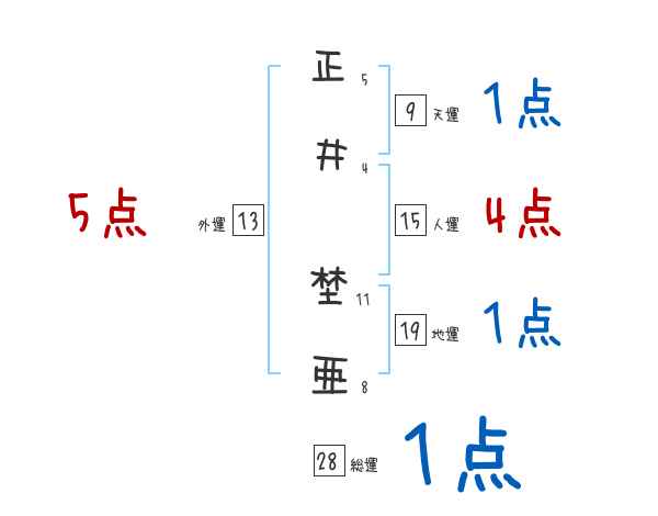 正井埜亜さんの画数の鑑定結果