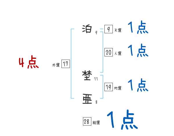 泊埜亜さんの画数の鑑定結果