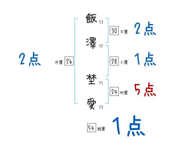 飯澤埜愛さんの画数の鑑定結果