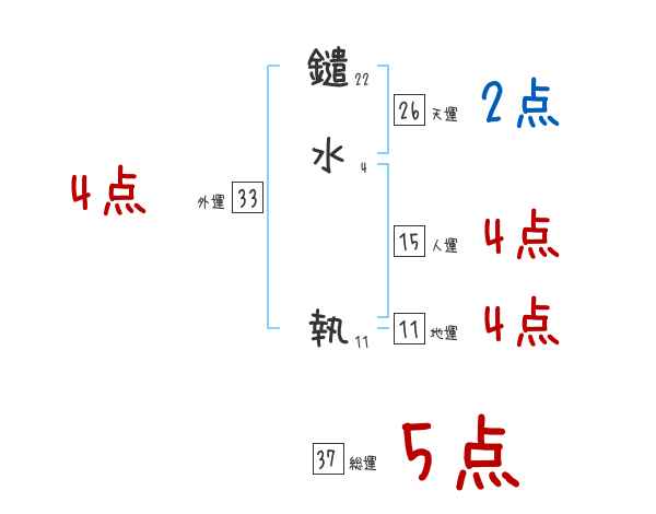 鑓水執さんの画数の鑑定結果