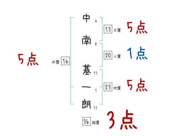 中南基一朗さんの画数の鑑定結果