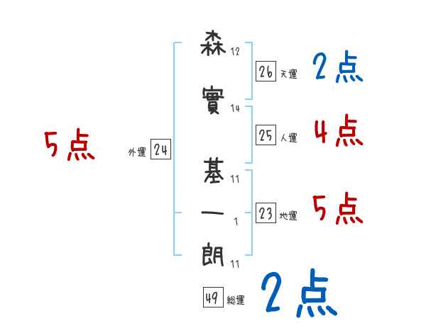 森實基一朗さんの画数の鑑定結果
