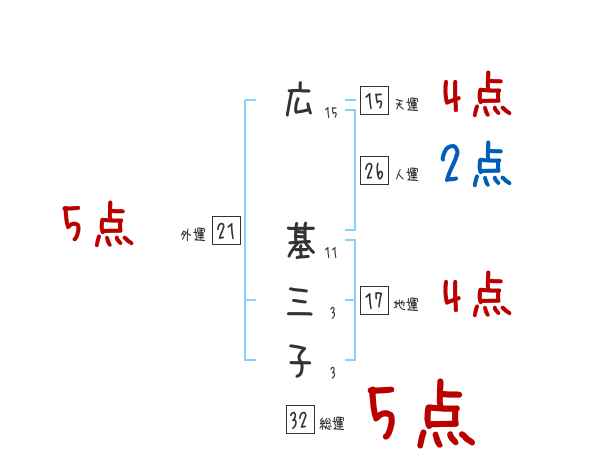 広基三子さんの画数の鑑定結果