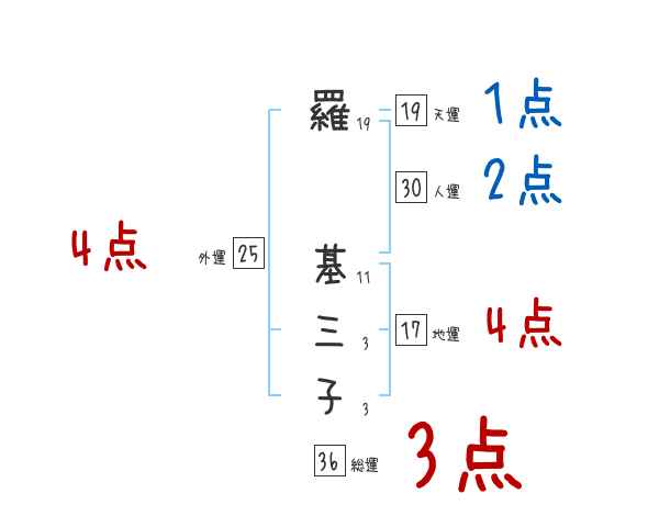 羅基三子さんの画数の鑑定結果