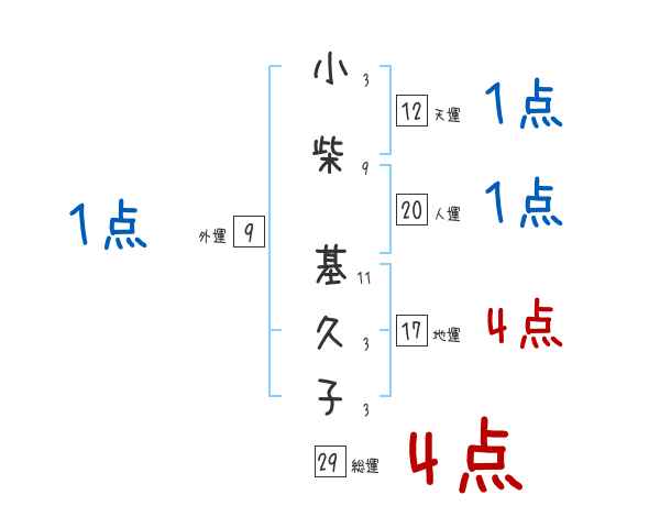 小柴基久子さんの画数の鑑定結果
