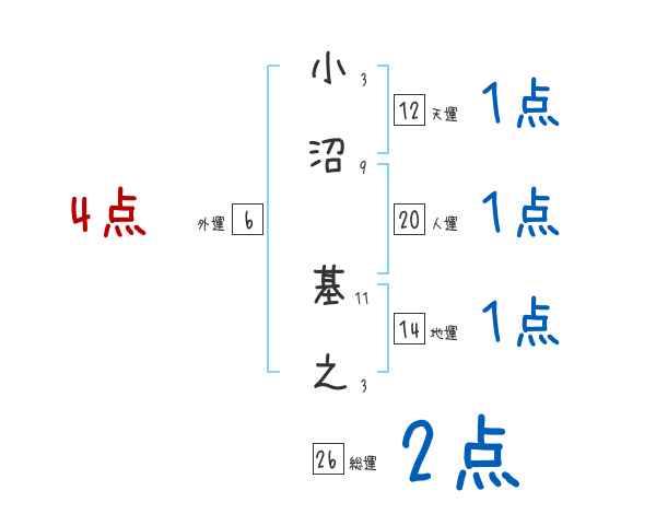 小沼基之さんの画数の鑑定結果