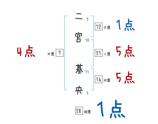 二宮基央さんの画数の鑑定結果