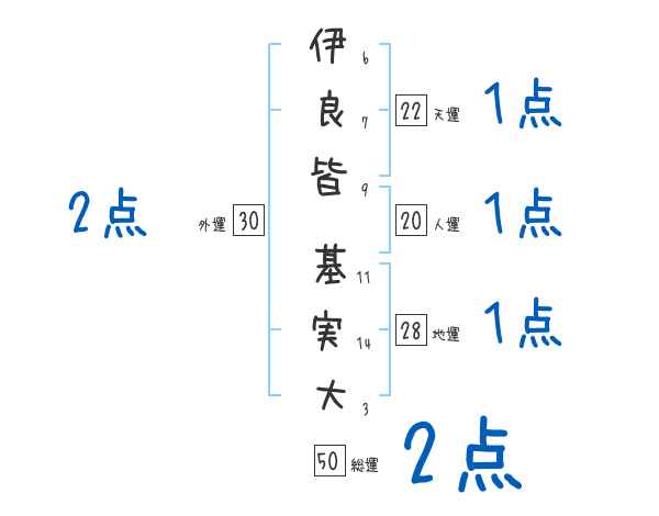 地運![]() | 伊良皆基実大さんの地運は28画の1つ星!家庭環境に注意。スポーツで活躍できる能力があるかも。 個性を表す基礎的な運勢です。性格形成や対人関係、行動力など家庭環境に影響されます。主に誕生してから20歳くらいまでの若年期の運勢を表します。 |