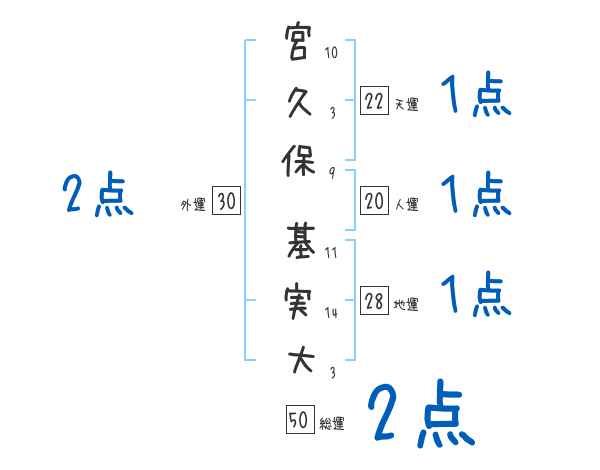 宮久保基実大さんの画数の鑑定結果