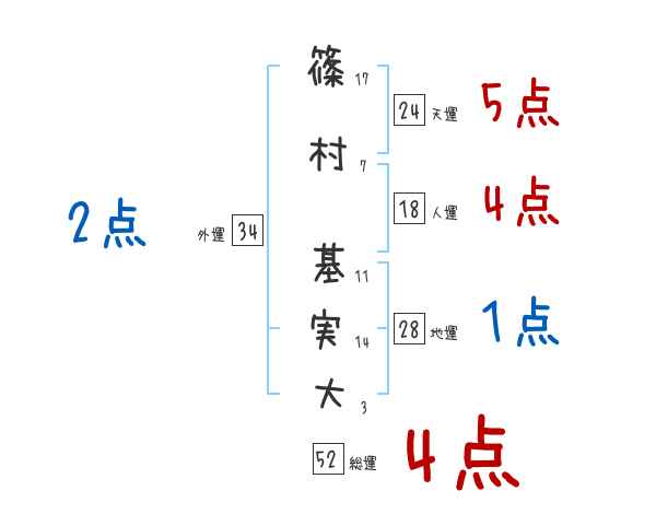 篠村基実大さんの画数の鑑定結果