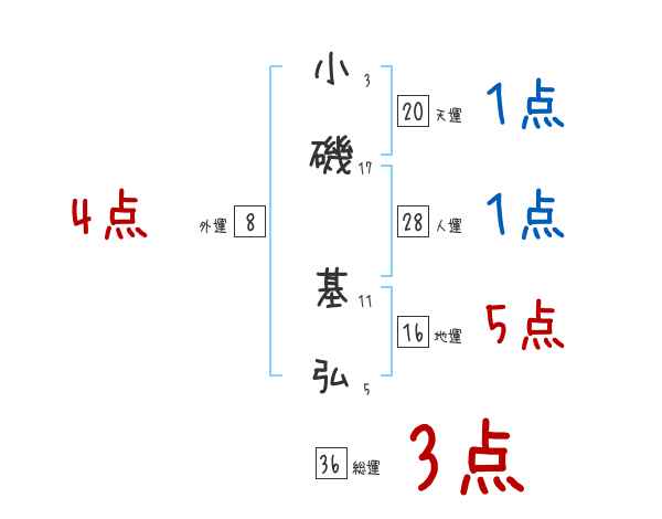 小磯基弘さんの画数の鑑定結果