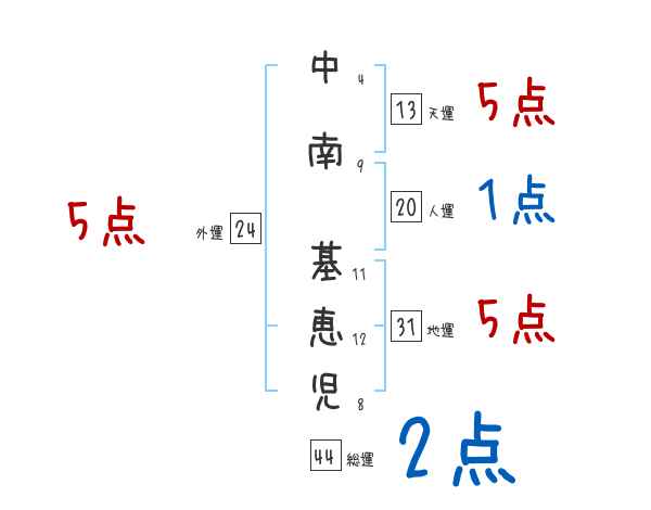 家系が持つ宿命的な運勢を表します。祖先から受け継いだ苗字ですので自分の力が及びません。家柄を象徴します。