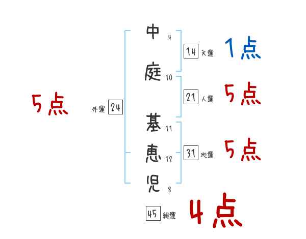 中庭基恵児さんの画数の鑑定結果