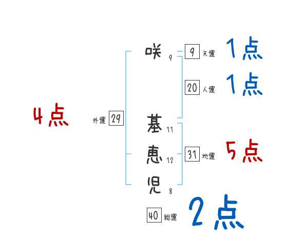 咲基恵児さんの画数の鑑定結果