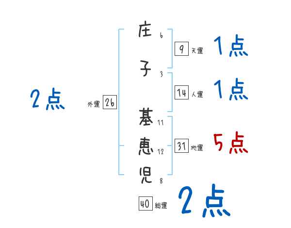 庄子基恵児さんの画数の鑑定結果