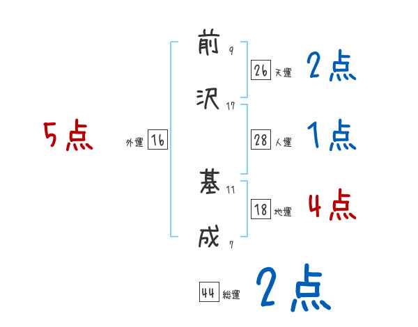 前沢基成さんの画数の鑑定結果