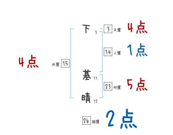 下基晴さんの画数の鑑定結果
