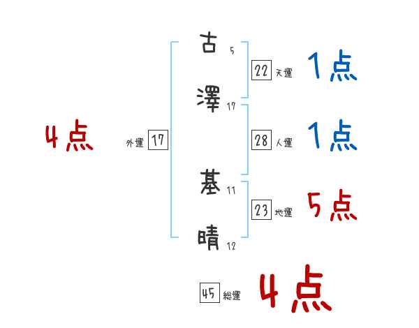 古澤基晴さんの画数の鑑定結果