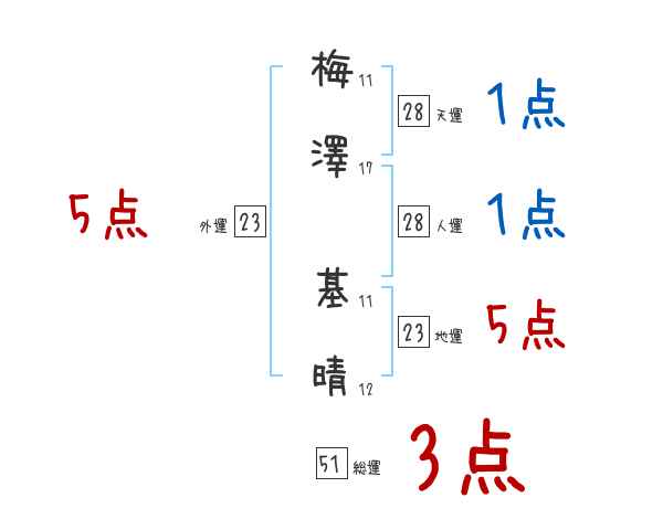 梅澤基晴さんの画数の鑑定結果