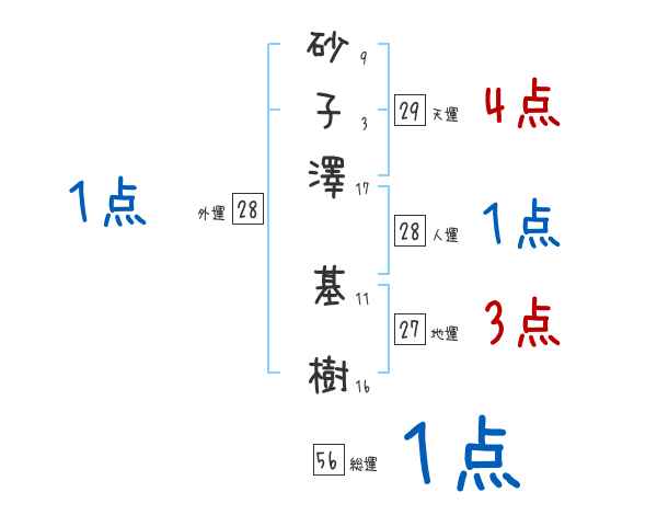 天運![]() | 砂子澤基樹さんの天運は29画の4つ星!完全主義で才能がある。厳格な心の持ち主。 家系が持つ宿命的な運勢を表します。祖先から受け継いだ苗字ですので自分の力が及びません。家柄を象徴します。 |