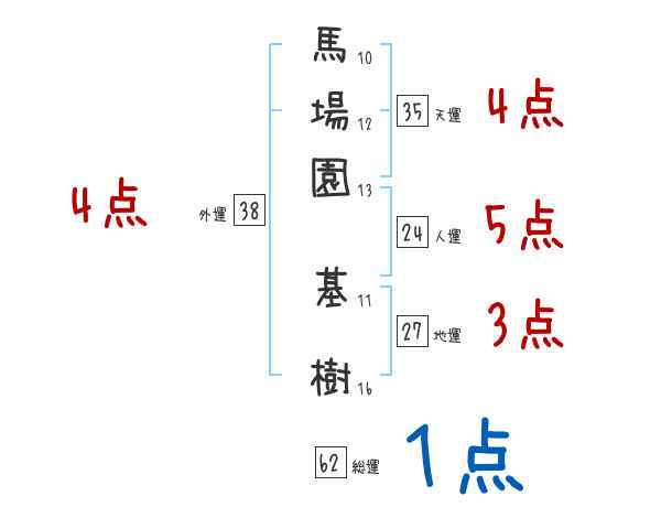 馬場園基樹さんの画数の鑑定結果